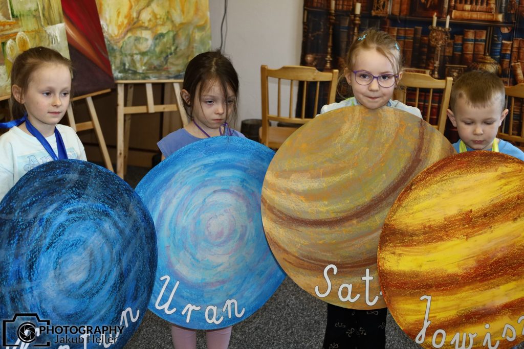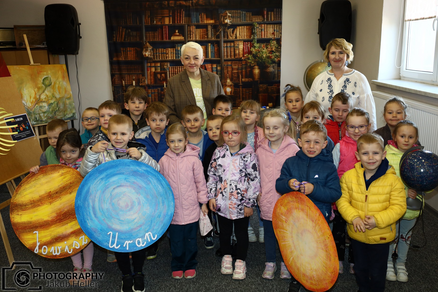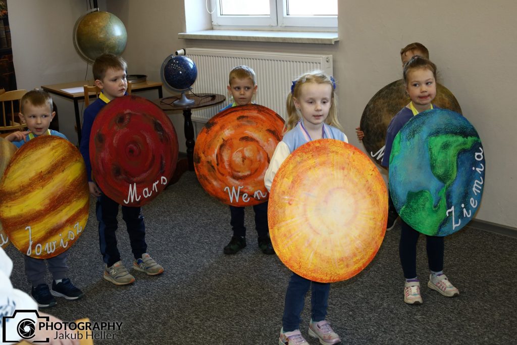 17 kwietnia odwiedziły nas przedszkolaki. Joanna Bałutowska-Bialic rozmawiała z dziećmi o kosmosie. W rolę planet wcieliły się przedszkolaki. Dzieci posiadają w tym temacie już sporą wiedzę. Wysłuchały bajki oraz rozwiązywały zagadki związane z kosmosem.