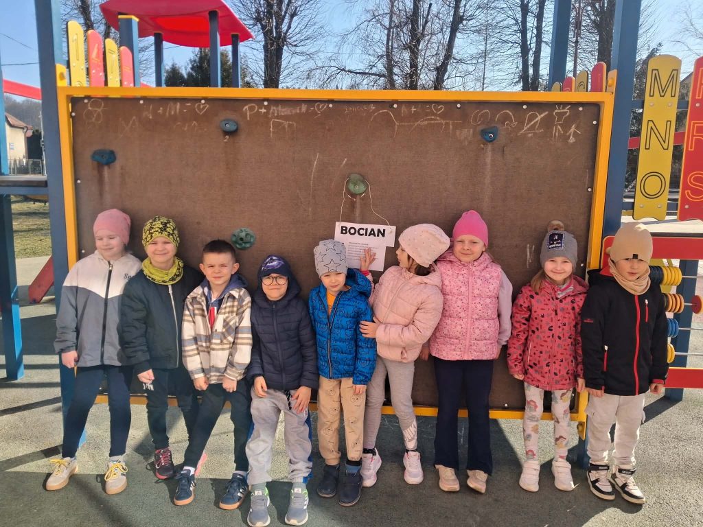 13 marca odbyły się dwa spotkania z przedszkolakami z „ Bajkowej Krainy” Tego dnia wspólnie wyruszyliśmy na poszukiwanie wiosny. Dzieci podzielne na grupy odszukiwały na szkolnym podwórku kart z zadaniami i przyrodniczymi ciekawostkami. Przyporządkowanie wiosennych kwiatów do ich nazw, odnalezienie ptaków przylatujących do Polski na wiosnę, zbudowanie gniazda czy stworzenie słońca z darów natury – to zadania jakie czekały na naszych małych poszukiwaczy. Zadania wymagały współpracy i wspólnego podejmowania decyzji – gdzie iść, a raczej biec i które zadanie wykonać najpierw. Momentami było to trudne, bo dziecięca energia sprawiała, że nogi same niosły i nie chciały poczekać na innych.