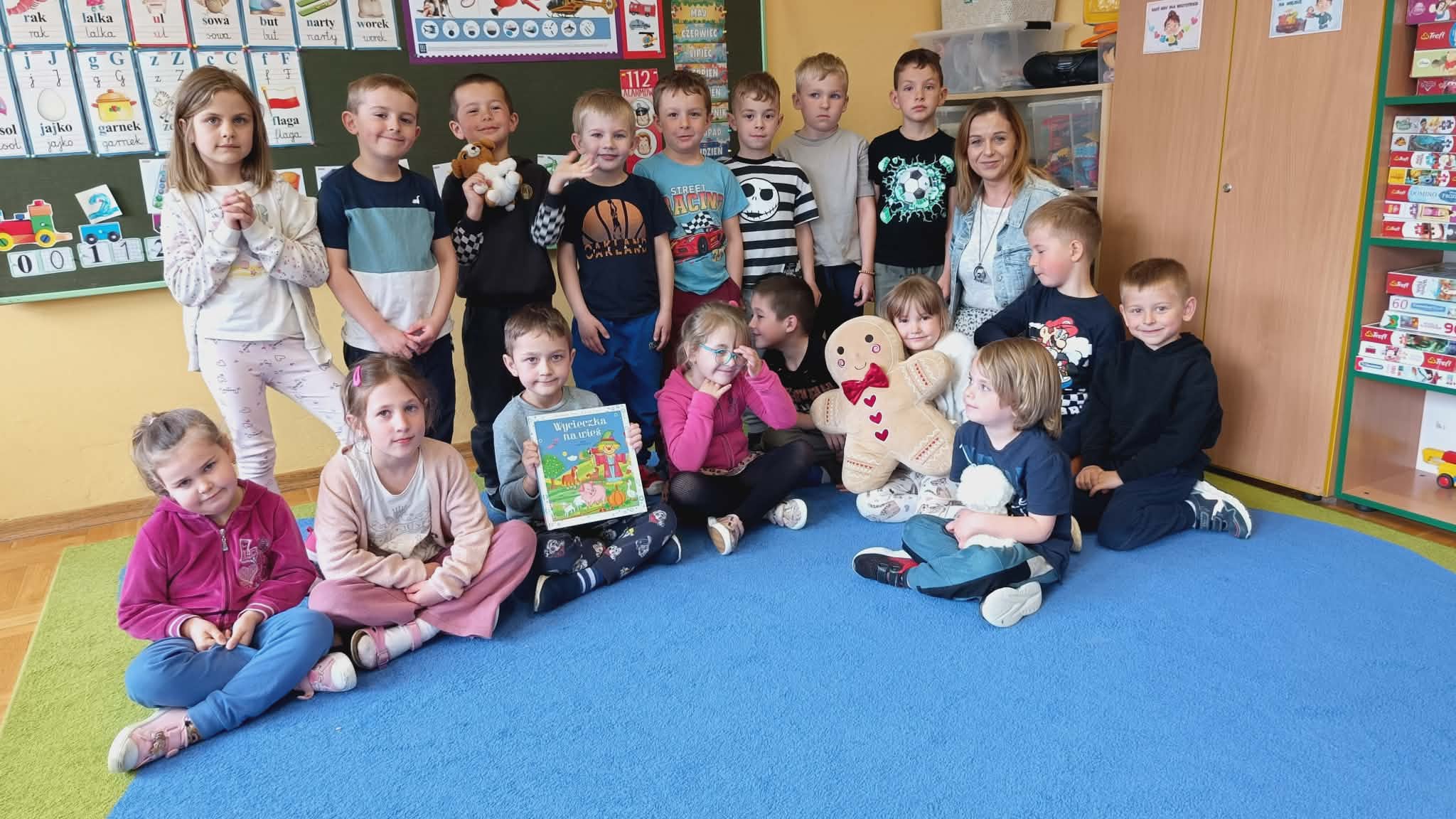 24 kwietnia podczas mojej co tygodniowej wizyty w przedszkolu przeczytałam dzieciom bajeczkę Anny Wiśniewskiej pt. „Wycieczka na wieś”. Podczas wspólnego czytania przedszkolaki przeniosły się w świat wiejskiego podwórka i poznawały zwierzęta, które można spotkać na wsi – na podwórku, na polu, w stawie, a także w sadzie i ogrodzie. Dzieci z dużym zainteresowaniem opowiadały o krowach, koniach, owcach, kaczkach, kurach, świnkach oraz innych zwierzętach gospodarskich. W trakcie zajęć rozmawialiśmy również o tym, jak nazywają się młode zwierzęta. Dzieci świetnie z małymi podpowiedziami wiedziały, że dziecko krowy to cielę, konia – źrebię, a owcy – jagnię. Wspólnie również naśladowaliśmy odgłosy zwierząt – muczeliśmy jak krowy, beczeliśmy jak owce, gęgaliśmy jak gęsi i kwakaliśmy jak kaczki, co sprawiło wszystkim wiele radości i śmiechu. Nie zabrakło także rozmowy o tym, co jedzą zwierzęta oraz jakie warzywa i owoce można spotkać w sadzie i ogrodzie. Dzieci wymieniały marchewkę, dynię, pomidory, jabłka, gruszki, śliwki i wiele innych darów natury. Spotkanie było nie tylko ciekawą lekcją o życiu na wsi, ale także wspaniałą okazją do wspólnej zabawy i rozwijania zainteresowań czytelniczych. Dzieci z radością słuchały bajki i aktywnie uczestniczyły w rozmowach.